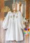 Hand stitched birds and beautiful crochet trims add a layer of detail to each kaftan.