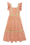 Ruffled sleeves, side ties and pretty smocking details make this dress a special summer style.