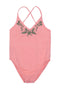 Our versatile Honey leotard in emerald features a pretty and colourful hand-embroidered flower motif across the front neckline. Adjustable spaghetti-crossover straps add a delicate and practical touch while pop-studs at the crotch make the Honey easy to wear all day. All our leotards work brilliantly worn underneath our seasonal bottoms. Comes in a Lycra-cotton blend.