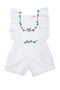 There's loads of choice this year with our bestselling Tulip Playsuits. We have four print designs - bluebird whisper, coral harvest flowers, hibiscus spring, and yellow whisper and four solid colours with embroidery. So much choice!
