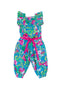 Girls will love to jump and dance around in this super cute jumpsuit. The harem style pants can be worn long or pushed up to just below the knee. The top is fitted but has elasticised ruching down the side for a snug but very comfortable fit. A zip runs down the back for easy on/off on off.
