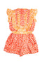 There's nothing plain about this gorgeous 100% silk playsuit, featuring a frilled yolk and frilled capped sleeves in a contrasting fabric, this style is a favourite featured in all our collections. Zip down the back for easy on/off.