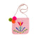 hibiscus with three little feature pom poms and a leather shoulder strap.