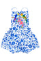 The pretty Honore in papaya features detailing in our summer dahlia print plus a hand-embroidered flower motif across the front. The waist is secured with ties on either side, while ruffles extend from the waist to over the shoulder and fabric-covered buttons run down the back. Pop studs enable easy dressing. Comes in cotton voile.