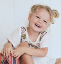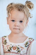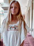Hand stitched birds and beautiful crochet trims add a layer of detail to each kaftan.