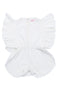 Inspired by our stunning Delphine top from Folk Song, with ruffle detailing from the waist up over the shoulders, our new sunsuit in our eye popping saffron almond blossom is certainly going to be a favourite this summer! There are snap fasteners at the crotch for easy nappy changes