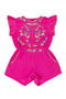 The hand stitching is the feature of our darling new sunsuit. Nothing says summer more than a fresh white outfit and the extra detailing of coloured embroidery is so pretty. It has two side pockets and it's super easy to get on and off with a zip running down the back. And of course there are snaps for easy nappy changes.