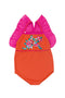 Everyone loves a leotard and with stunning saffron frilled straps and a cross back, ours is anything but ordinary. Absolutely striking in cerise and saffron with bold hand stitching, you can't say no to this! Style back with any of our skirts or shorts.